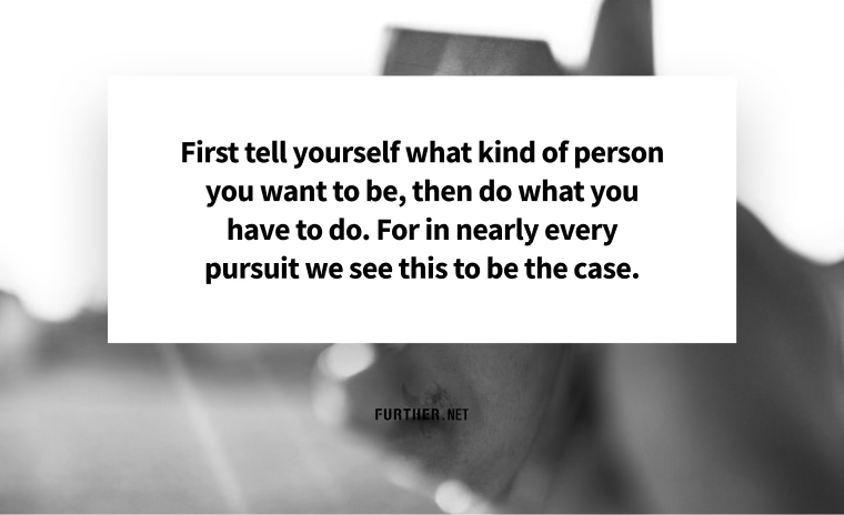 First tell yourself what kind of person you want to be, then do what you have to do. For in nearly every pursuit we see this to be the case.
